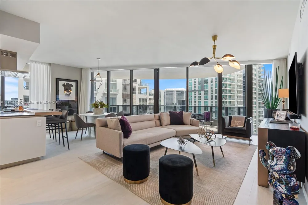 Live at the newest & most luxurious building with the highest quality and in the best location in Downtown Brickell. This 2 bedrooms and 2 baths with 1/2 bath on the 35th floor at the brand new ultra-luxurious Brickell Flatiron Condo. This unit is the 01 line; the most coveted line in the tower. With 9' ceilings and floor to ceiling glass, breathtaking views south, east, north, and west. The colorful city lights, Biscayne Bay, and views as far as Coconut Grove are yours to enjoy. Amenities include 2 Pools,2 Jacuzzis, State of the Art Fitness Center, Spa with Steam, Sauna and massage & spectacular views from the 64th level amenity floor.2 Lounges, Theatre room, billiard room, and Children room. New electric shades and brand new closets installed.