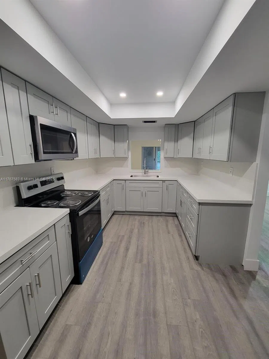 This newly remodeled condo in the The Oxford is move in ready. This first floor unit features 2 bedrooms, 2 bathrooms, a beautifully renovated kitchen with quartz countertops and stainless steel appliances, updated bathrooms and new flooring throughout. Freshly painted. Washer and dryer inside the unit.